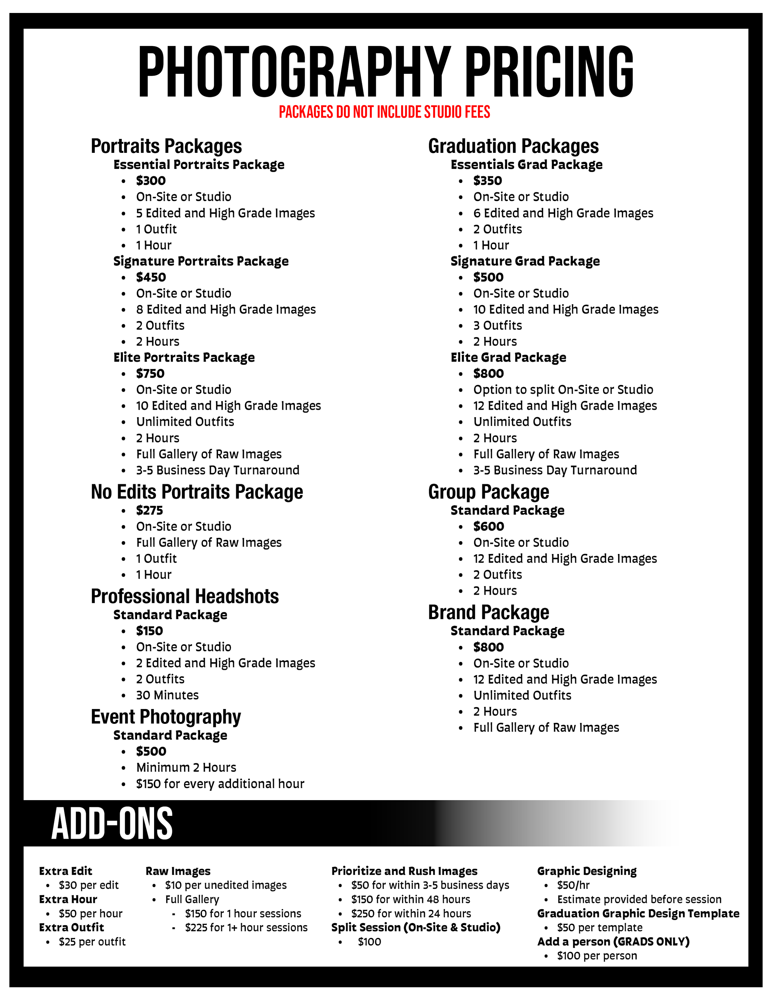 Option to split between On-Site or Studio